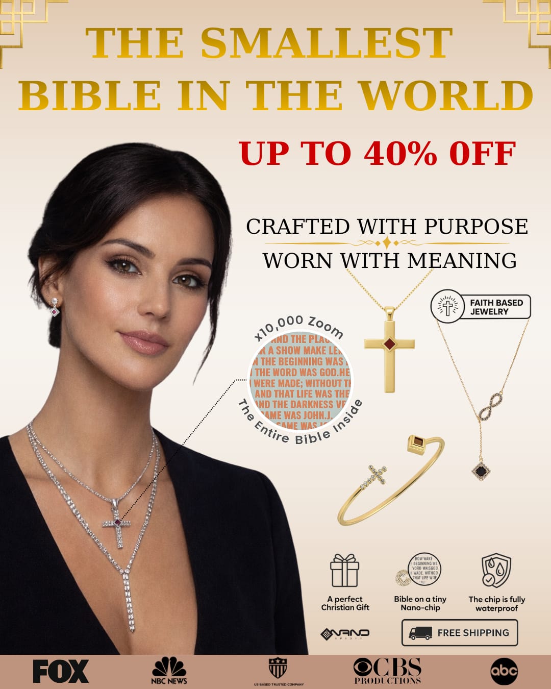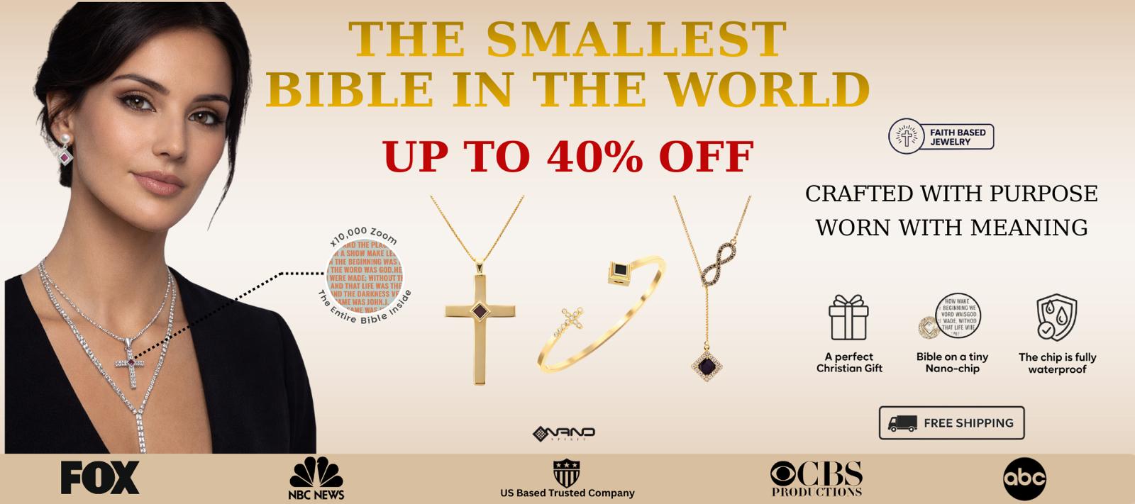 Over 3 million letters of sacred text engraved on a single nano chip using advanced nanotechnology. Carry God's Word with you everywhere.